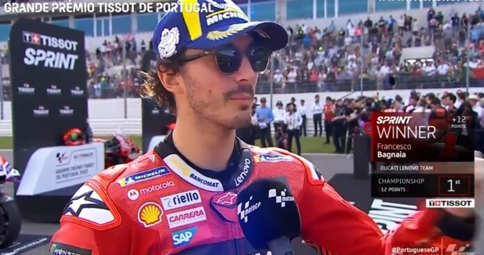 OtomotifZone.com-Portugal. Sirkuit Portimao, Portugal menjadi tempat bersejarah dengan adanya format baru Sprint Race hari ini (25/3). Balapan yang di ambil 50% dari balapan utama ini cukup seru. Pertarungan singkat yang tak kalah menarik dengan race full yang biasa di helat. Nama Pecco Bagnaia menjadi sosok pembalap terbaik yang berhasil memenangkan perlombaan ini.