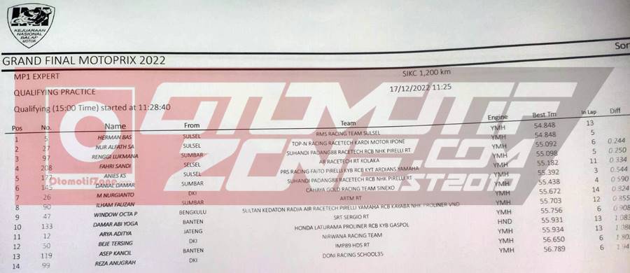 Lalu posisi berapa pebalap andalan kalian? Berikut hasil kualifikasi Expert: