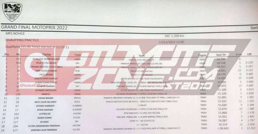 Lalu posisi kedua dan ketiga ada dua pebalap dari Yamaha Yamalube TDR Cargloss RRS IRC. Mereka adalah Felix yang duduk di posisi kedua dan Josua Mbeo diposisi ketiga. Lalu apakah mereka akan menjadi jaminan sebagai pebalap terbaik di Race 1? Tentu belum pasti karena semua bisa saja terjadi. Berikut adalah hasil kualifikasi Novice: