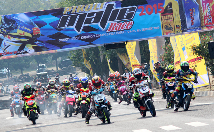 OtomotifZone.com – Cimahi. Sebanyak 530 starter mengikuti gelaran balap bergengsi “Pikoli Matic Race Sumber Production 2015”. Pikoli Moto Racing Oil berkolaborasi dengan Sumber Production kembali menggelarnya di Sirkuit Brigif 15 Kujang II Cimahi, Jawa Barat, 4-5 September 2015. Gelaran kedua Pikoli Matic Race Sumber Production 2015 ini mengalami peningkatan dalam jumlah starter.