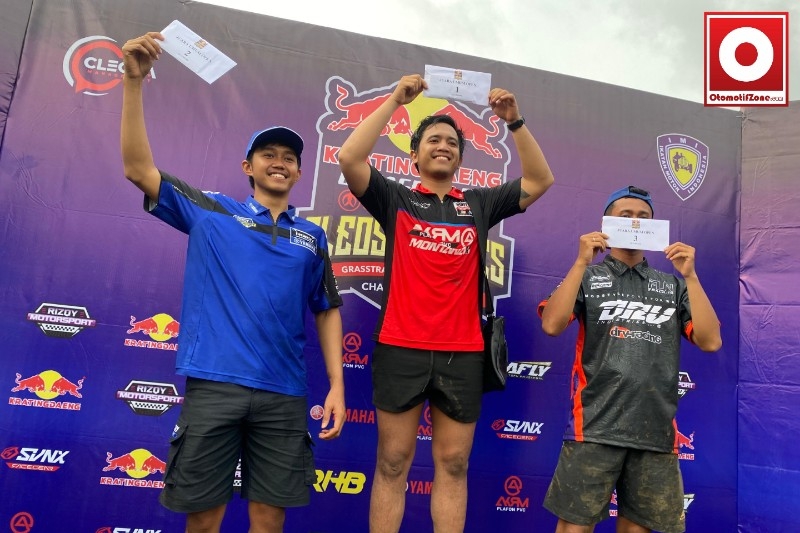 Persaingan kelas grasstrack open di tiga kelas dari Bebek Modifikasi, FFA, dan Sport Trail 4T memang benar-benar mix ketika hujan membasahi trek. Sempat terprediksi bahwa Zidane bakal menggondol hasil juara ketika moto kedua FFA dia berhasil menang.