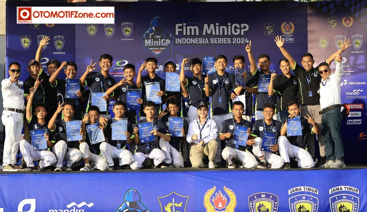 OtomotifZone.com – Jakarta. Sudah beberapa kali FIM MiniGP Indonesia melibatkan siswa didik SMK untuk menjadi mekanik. Para siswa SMK ini diajak untuk langsung menangani motor motor peserta balap di setiap event mereka. Hal seperti ini ditanggapi positif. Salah satunya dari Kepala Sekolah SMK Nusa Mandiri Pemalang.