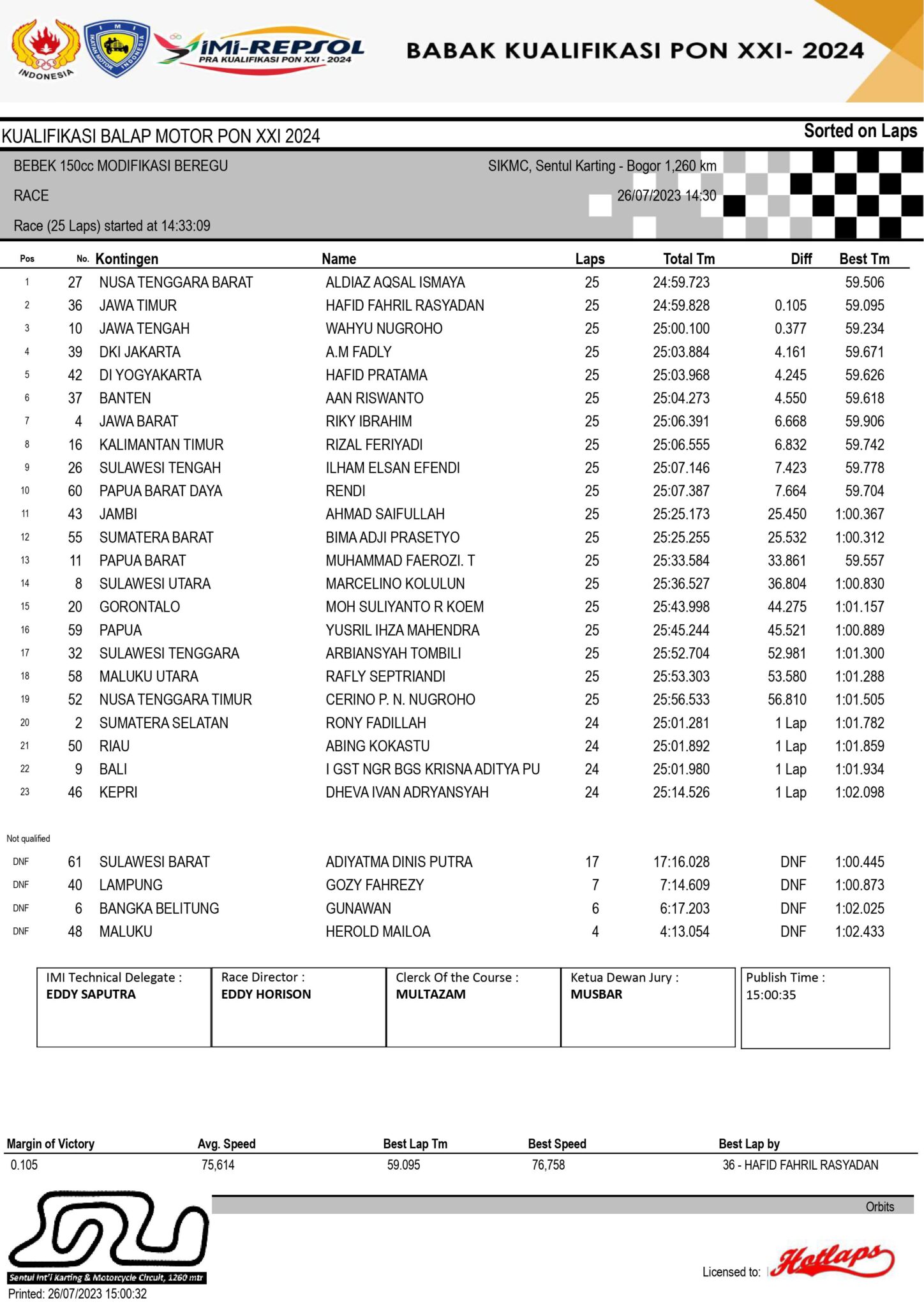 Balapan ini akan dikenang sebagai salah satu momen seru dan menegangkan dalam ajang Pra PON XXI Aceh – Sumatera Utara di Sirkuit Internasional Karting Sentul, Bogor, Jawa Barat. Ketiga pebalap ini telah memberikan pertunjukan balap yang luar biasa dan memikat hati para penonton.
