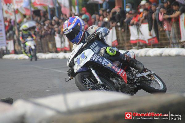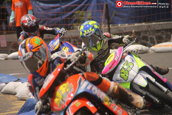Dicky Ersa yang tergabung Yamaha Yamalube Bahtera di kelas 110cc seri terakhir kali ini belum cukup aman karena Ahwin Sanjaya dari Yamaha Yamalube Trijaya mengejar 7 point di belakang Dicky. Ahwin yang beberapa minggu ini makin kencang dengan Z1 hasil olah Harris Sakti “Mlethis”. Sedangkan motor Dicky terlihat agak kualahan beberapa event terakhir. “Iya mas. Tapi motor sudah disiapkan tak lupa fisik juga. Yak tetap berdoa dan berusaha aja mas supaya dapat hasil yg terbaik,” optimis Dicky.