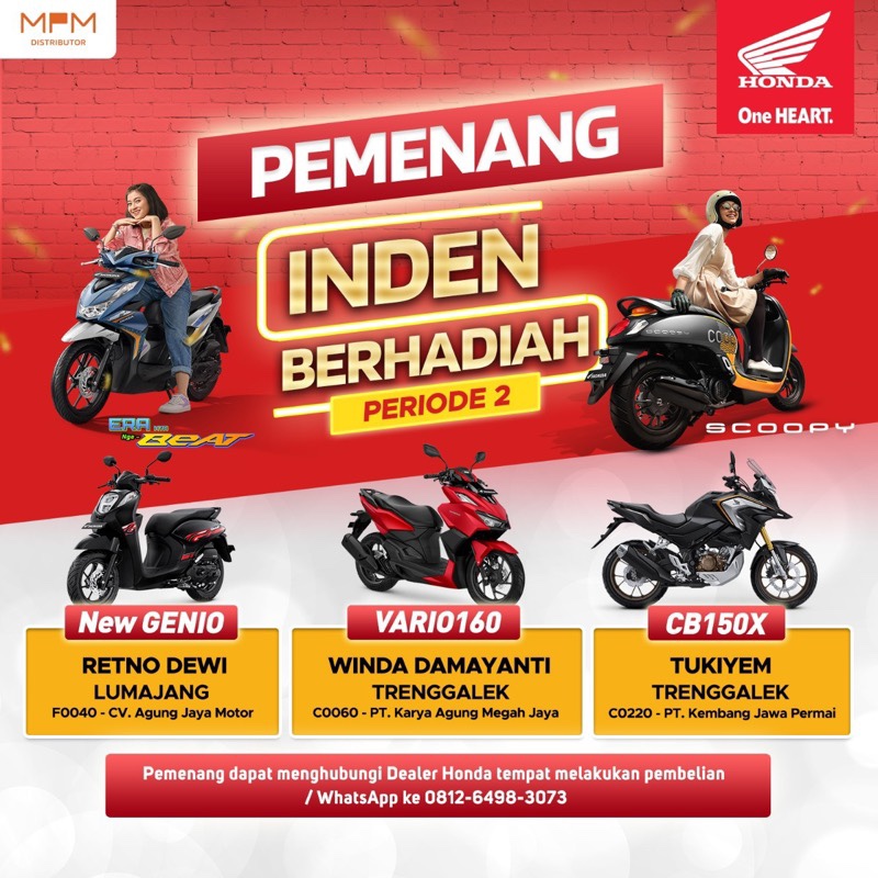 Pengundian tahap 2 program inden berhadiah sudah dilakukan melalui siaran langsung Instagram @mpmhondajatim untuk menentukan pemenangnya pada tanggal 11 Juli 2022.