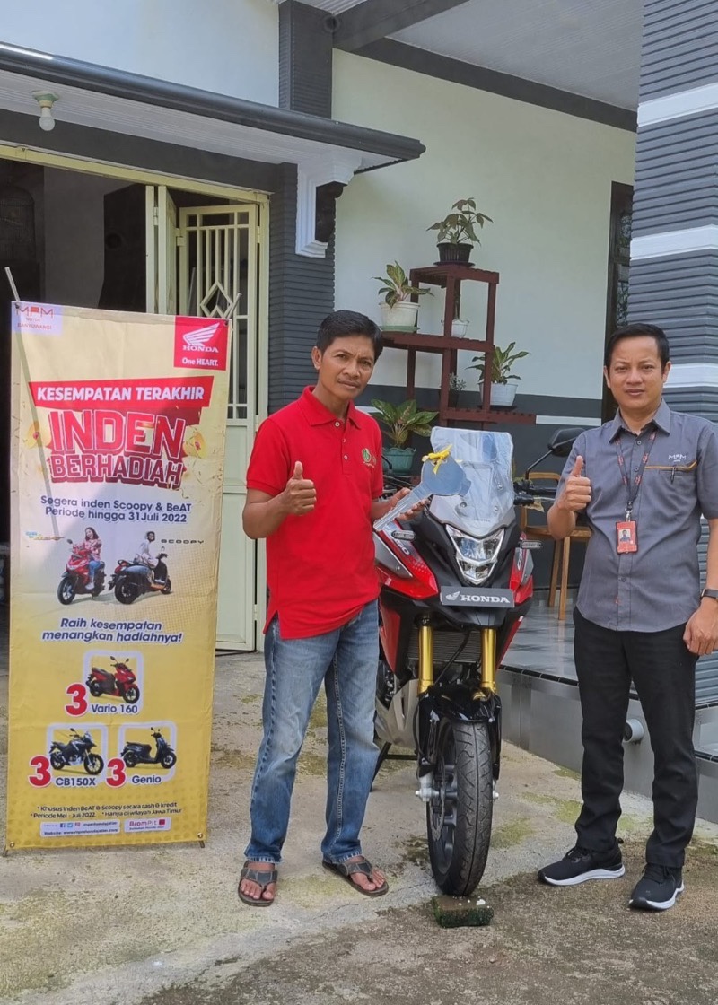 Salah satu pemenang hadiah 1 unit Honda CB150X pada program Inden berhadiah, Agus Nurhadianto mengatakan sangat berterima kasih kepada MPM Honda telah mendapatkan hadiah motor ini pada undian program Inden berhadiah.