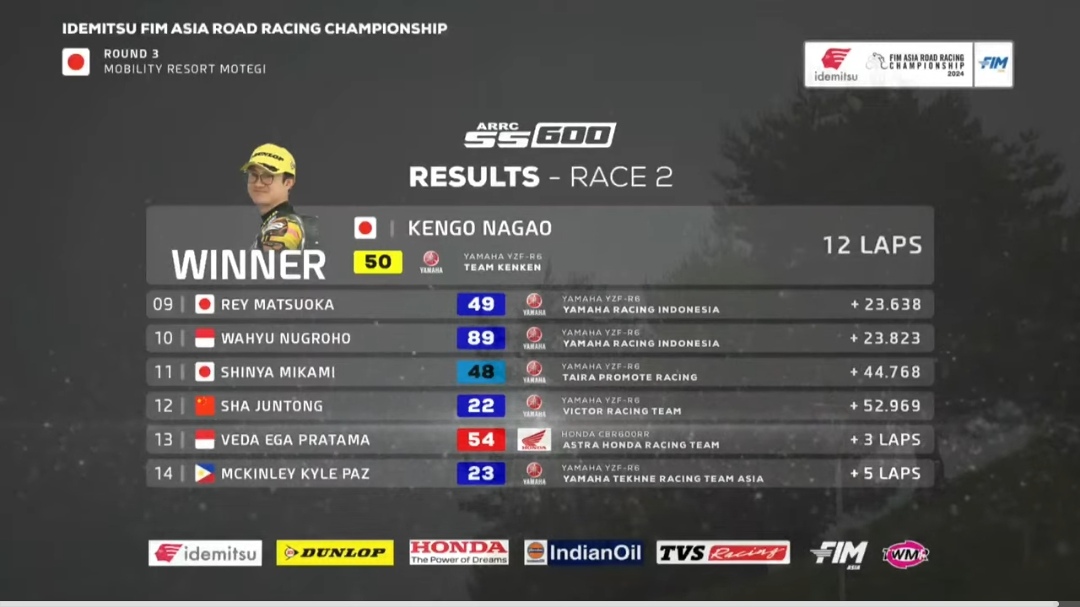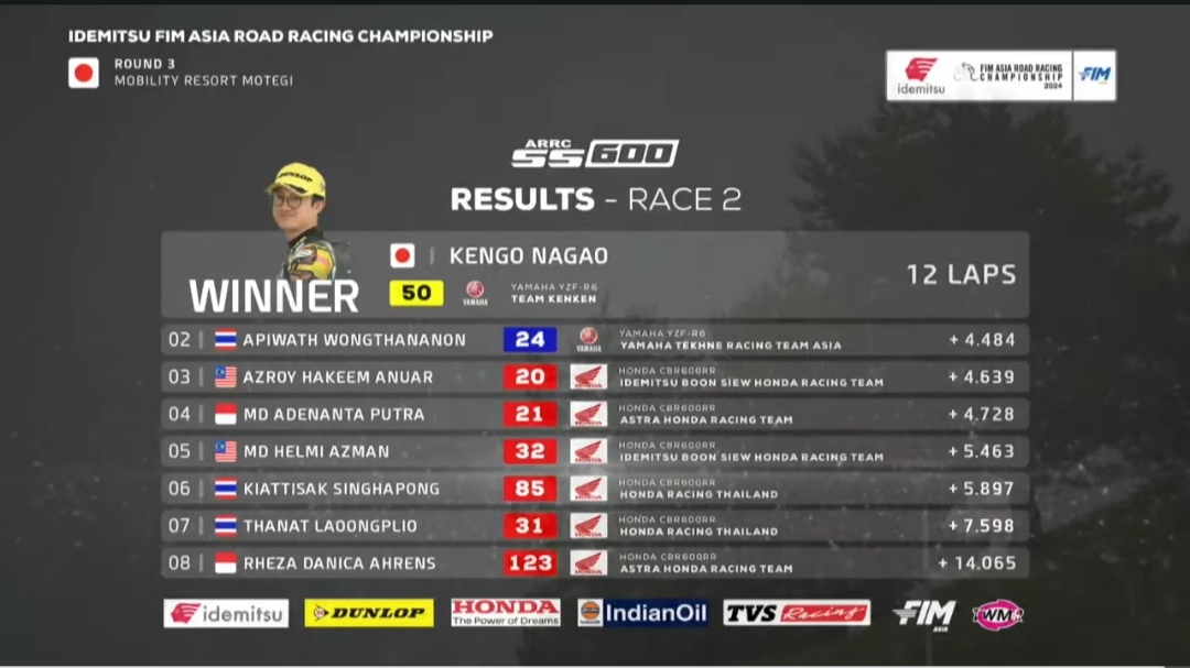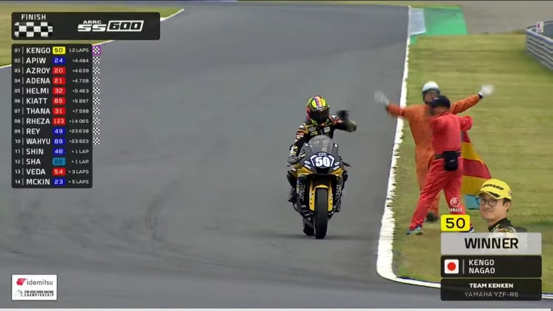 OtomotifZone.com – Jepang. Race 2 Supersport 600 – SS600 Asia Road Racing Championship – ARRC sirkuit Motegi Jepang 9 Juni 2024 sepertinya ada kesalahan pada para peserta reguler. Saling serang membuat rider tuan rumah Kengo Nagao ngibrit ngacir tanpa lawan. M. Adenanta kali ini melakukan start baik dan tak ada contact body sampai R2.