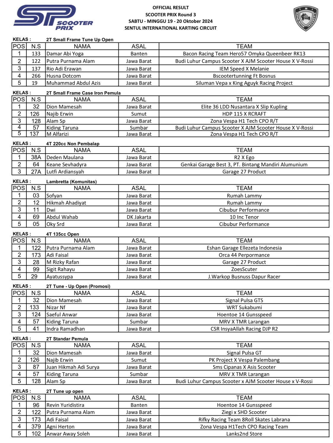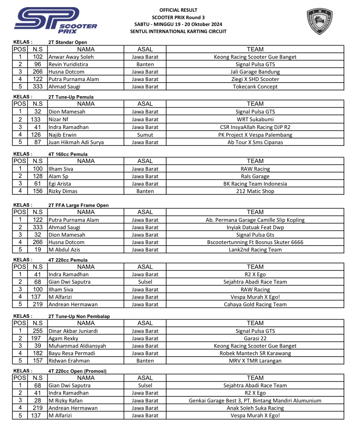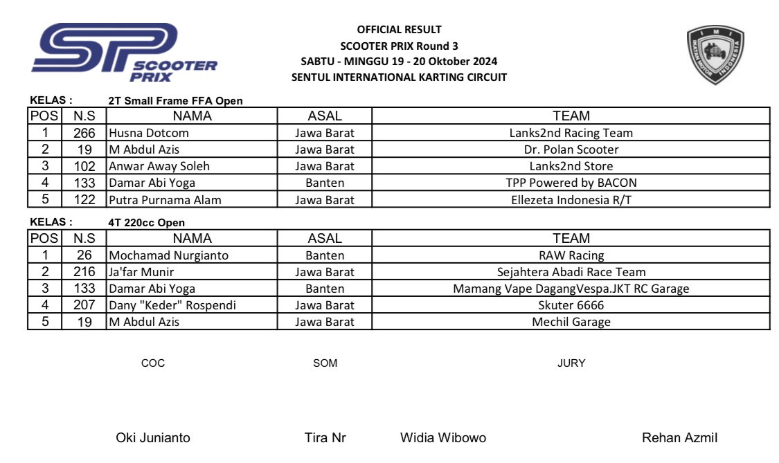 Sehingga atmosfer persaingan, teramat ketat dan sengit. Berikut hasil keseluruhan dari gelaran Scooter Prix Seri 3, Oktober 2024.