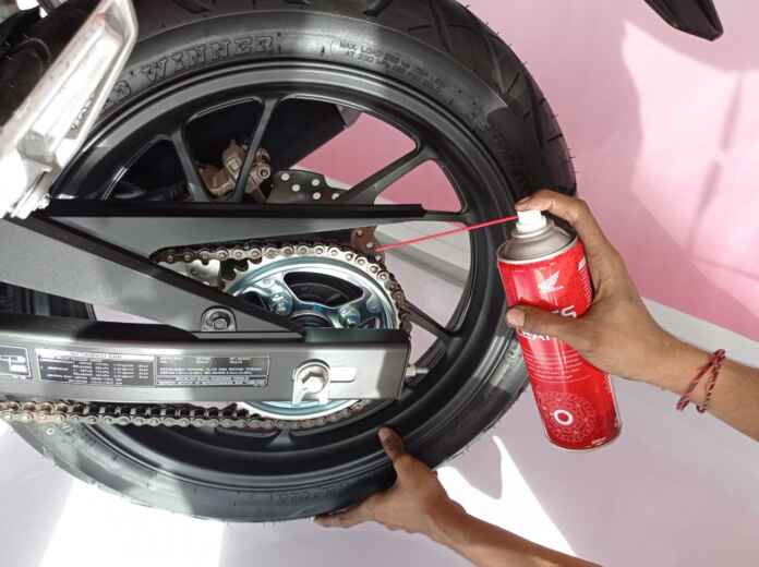 Setelah proses membersihkan rantai selesai, beri pelumas dengan menggunakan pelumas rantai roda. Berikan oli atau pelumas pada roller rink dan link plate. “Selain menggunakan pelumas rantai, pengguna sepeda motor dapat menggunakan gear Oil SAE 80 – 90 baru sehingga kualitas rantai dapat terjaga dengan baik,” ujarnya.