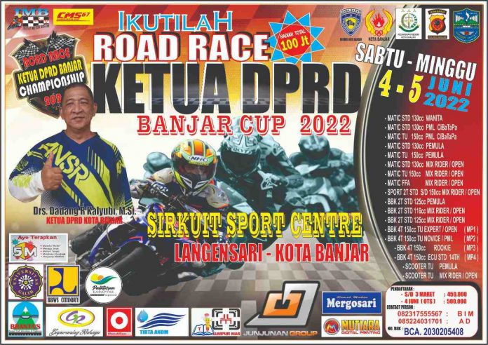 OtomotifZone.Com – Banjar. Ratusan juta rupiah merupakan hadiah total di gelaran Road Race Ketua DPRD Banjar Cup 2022. Gelaran akan berlangsung di Sirkuit Sport Centre Langensari Kota Banjar Provinsi Jawa barat, Sabtu-Minggu (4-5/6).