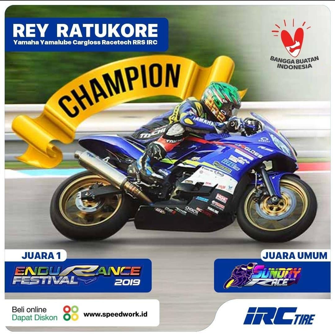 “Seorang Juara bernama Rey Ratukore mempercayakan ban balapnya kepada ban IRC Radial RMC830 yang menjadi salah satu kunci kemenangannya di ajang kelas sport 250 cc Yamaha Endurance Festival 2019,” jelas akun resmi IRC Tire.