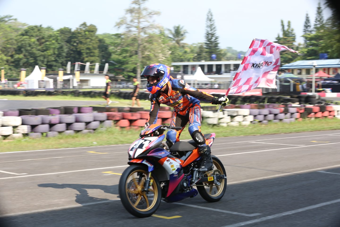 “Perjalanan balapan tadi, di lap awal saya posisi ketiga, terus maju jadi kedua, takut terlalu lama akhirnya saya paksa untuk maju ke posisi pertama. Di race kedua ini saya belajar dari race pertama tinggal jaga ritmenya saja” kata Gilang Akbar, Rider Oneprix.