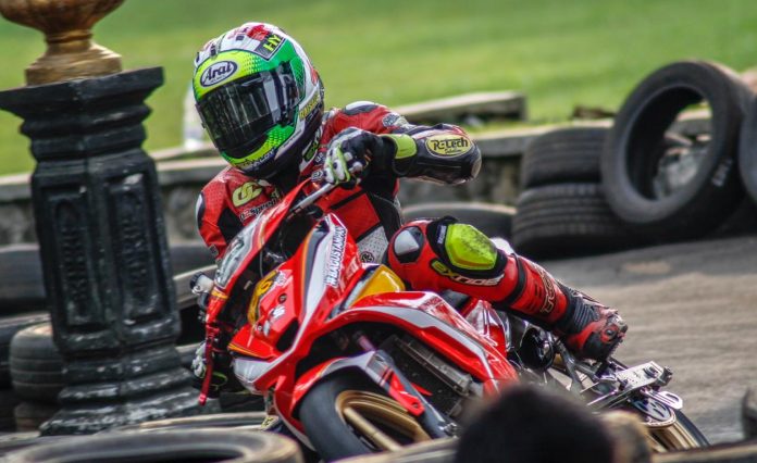 OtomotifZone-Sukabumi. Pembalap muda asal Kota Cianjur mampu membuat para penonton yang hadir di sirkuit NP Yon Armed 13 Cikembang kota Sukabumi bersorak sorai karena aksi memukau dari Reza Reinaldy di event Bupati Cup Open Road Race 2019 Sukabumi,Minggu (24/2).