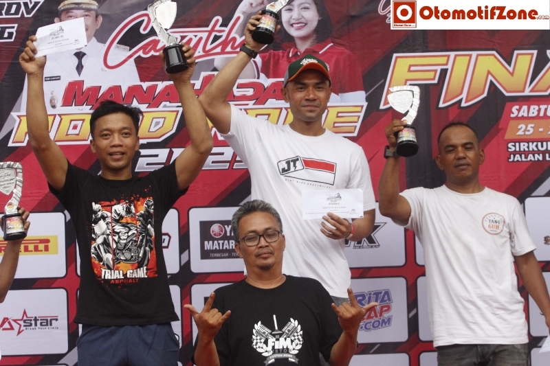 “Sebenarnya saya tidak menyangka karena saya hadir di final Casytha Manahadap Road Race ini hanya untuk mengisi jam kosong saya di Motocross dan Supermoto, tapi alhamdulillah saya bisa membawa dua juara. Persiapan pun mepet hari kamis baru memikirkan kalau ayo balap aja,” ucap juara National Executive 35+ 17 motocross 2023 ini.
