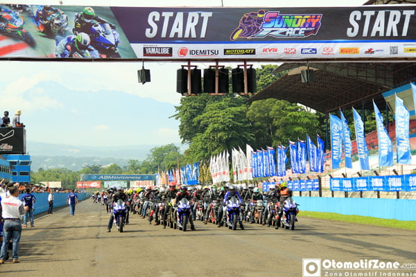 Otomotifzone.com – Sentul. Yamaha Sunday Race merupakan Event tahunan dari PT Yamaha Indonesia Motor Manufacturing (YIMM) untuk para riders pengguna R series, yakni R15, R25 dan R6 ajang balap satu ini sangat mamnjakan para komunitas karena mereka dapat merasakan balapan sesungguhnya, selain itu biasanya di acara pembuka Yamaha tiap serinya mengundang komunitas untuk melakukan Victory Lap.