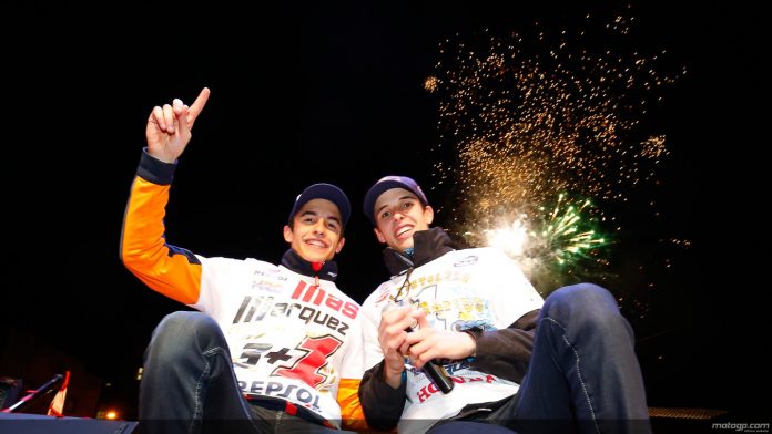 OtomotifZone.com – Cervera. Sabtu 15 November 2014 kemarin adalah waktu spesial bagi Marc Marquez dan Alex Marquez, ribuan fans merayakan keberhasilan dan memuji keberhasilan dua pembalap Spanyol tersebut yang telah meraih gelar juara dunia musim ini.