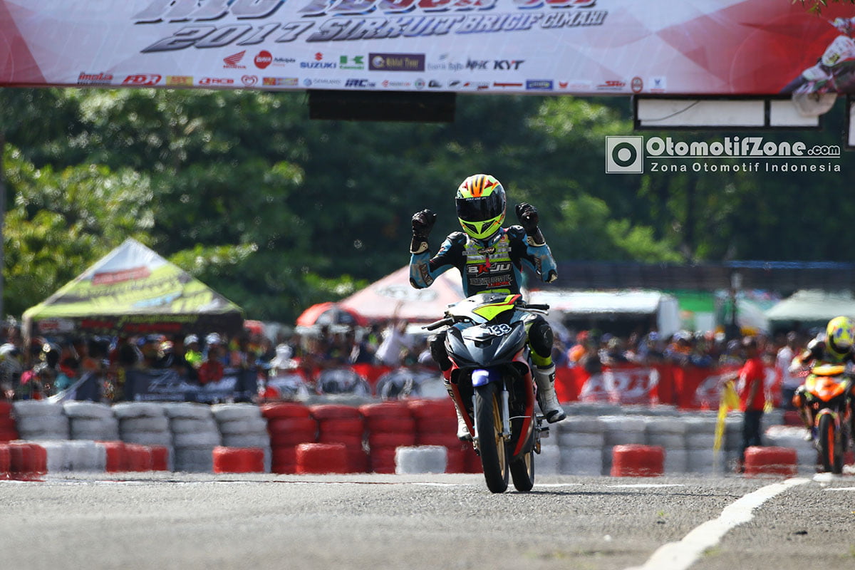 Otomotifzone.com – Cimahi. Damar Abi Bolang berhasil raih juara umum di event Rio euh Cup 2017. Damar Abi Bolang yang mana Bolang pembalap asal Provinsi Banten dan balap dengan team BKJU IMI Korwil Lebak ini berhasil menjadi juara umum dan dapatkan hadiah 1 unit sepeda motor Honda CBR 150R dan mengumpulkan 54 point dari ketiga kelas di kategori pemula di gelaran event akbar Rio Teguh Cup 2017 (23-24/12). Di Sirkuit Brigif 15 Kujang II, Cimahi, Jawa Barat.