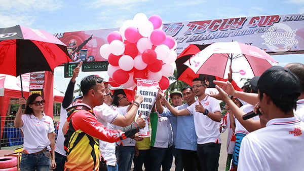 Rio Teguh Cup 2017 pertama kali digelar di sirkuit Brigif Kujang II Cimahi, Minggu (24/12). Hadiah yang digelontorkan pun fantastis, yaitu 4 sepeda motor sport Honda, juara RX King Rp10 juta, juara X-Rider Rp3 juta dan doorprize sepeda untuk penonton yang beruntung.