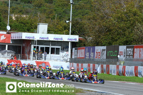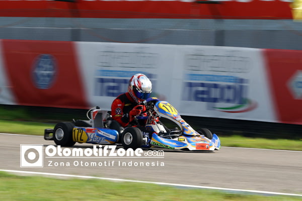 OtomotifZone.com-Italia. Pace kemenangan dan merebut tiket RMC Grand Final Sarno italia, rupanya masih melekat pada pegokart muda Indonesia, Perdana Putra Minang.