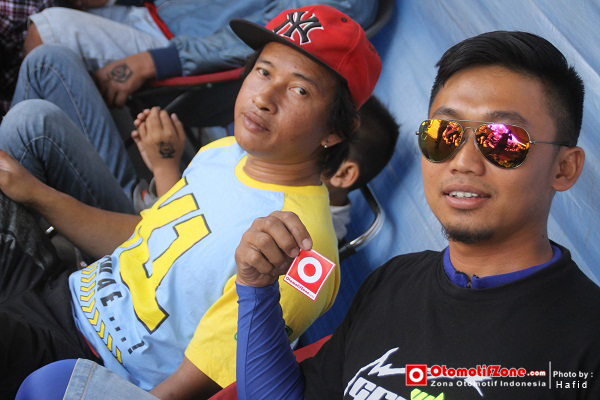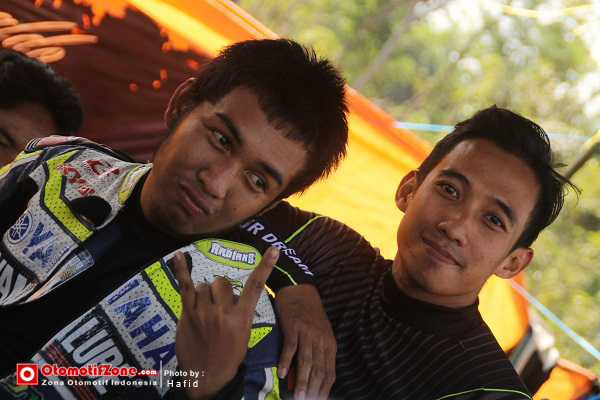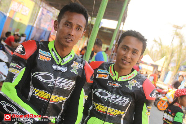 “Regulasi umur di kejurnas sebaiknya dihapus. Wong kita masih bisa bersaing dengan pembalap muda. Selain itu secara tidak langsung pembalap muda bisa mengasah skill saat balap sebenarnya dengan senior,” kata Agus “Bledug” Setiawan bersama Dwi “Jawir” Cahyono di team Ozza Timuran Motor Solo. Ini Agus Setiawan#62 gurunya Agus Setiawan#47, jangan bingung. Dwi Cahyono yang datang dari Surabaya pun akhirnya bisa menikmati rasanya balap di eranya.