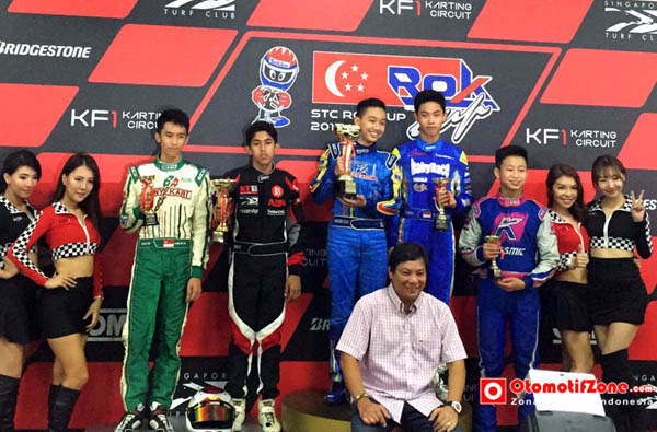 OtomotifZone.com-Singapura. Hadirnya pegokart-pegokart Indonesia dikancah Rok Cup 2015 Singapura menambah peta persaingan semakin panas. Dari mulai pembalap Mini rok hingga veteran Pegokart Indonesia mampu berbicar banyak dan menguasai podium kejuaraan yang digelar di KF1 Karting Circuit Singapura.