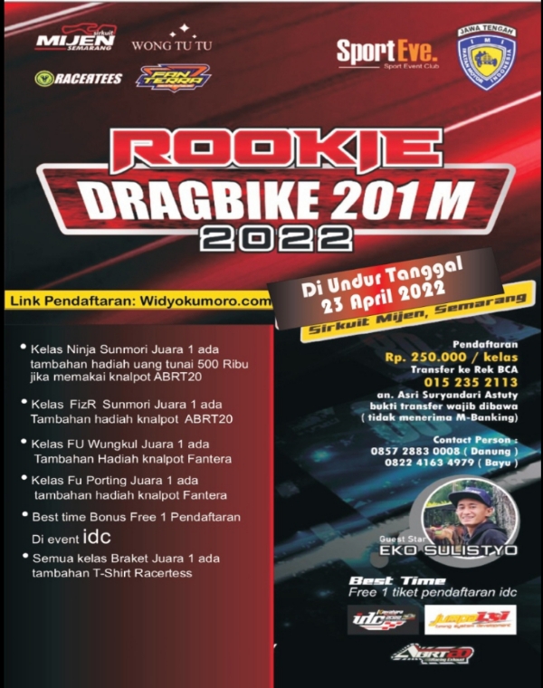 Dan ingat, seperti event sebelummya. Pembalap tercepat bakal ada hadiah berupa satu tiket gratis pendaftaran di IDC 2022. Jadi para rookies bakal di manjakan banget event besok nanti. Jangan sampai tidak merapat ke Mijen buat coba..