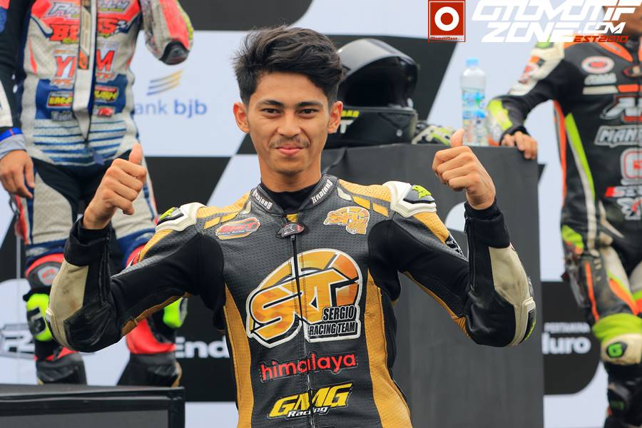 Lanjut pebalap asal Banten,” Motor ini lebih kencang dan atasnya tidak ada dropnya. Makannya saya hanya butuh lima lap awal saja untuk push motor. Sisanya saya hanya jaga ritme saja karena saya sudah tinggalkan lawan terlalu jauh,”