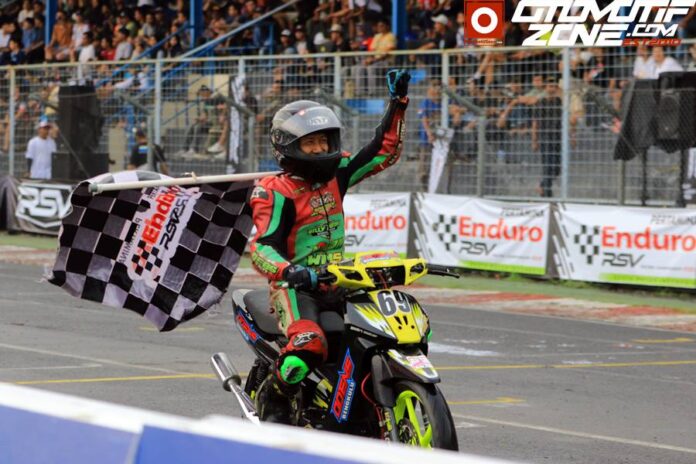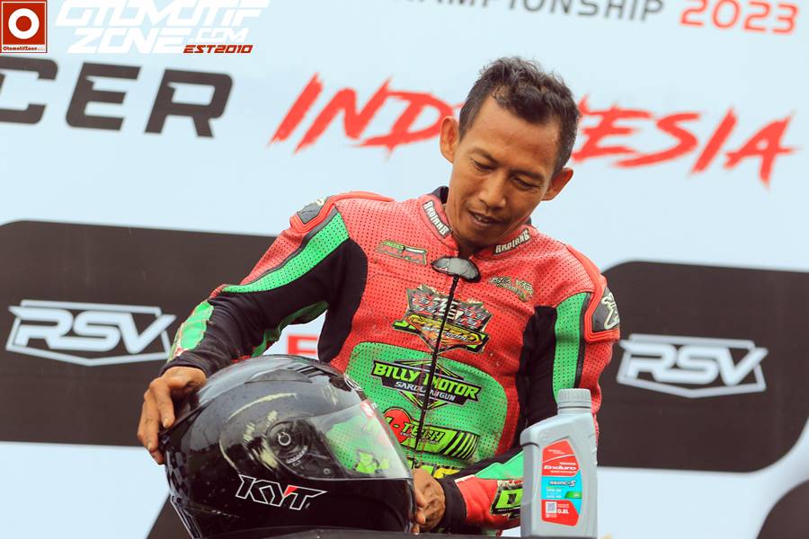OtomotifZone.com – Jakarta. Jauh jauh dari Bengkulu, pebalap Exrider ini sengaja ikuti balap di Pertamina Enduro RSV 2023 (10/12/23) di Sirkuit Internasional Karting Sentul, Bogor, Jawa Barat. Alif Budi Cahyadi pebalap senior yang terbiasa balap di Bengkulu mencoba kemampuannya di Sirkuit Sentul. Ternyata dirinya bisa menjadi juara.