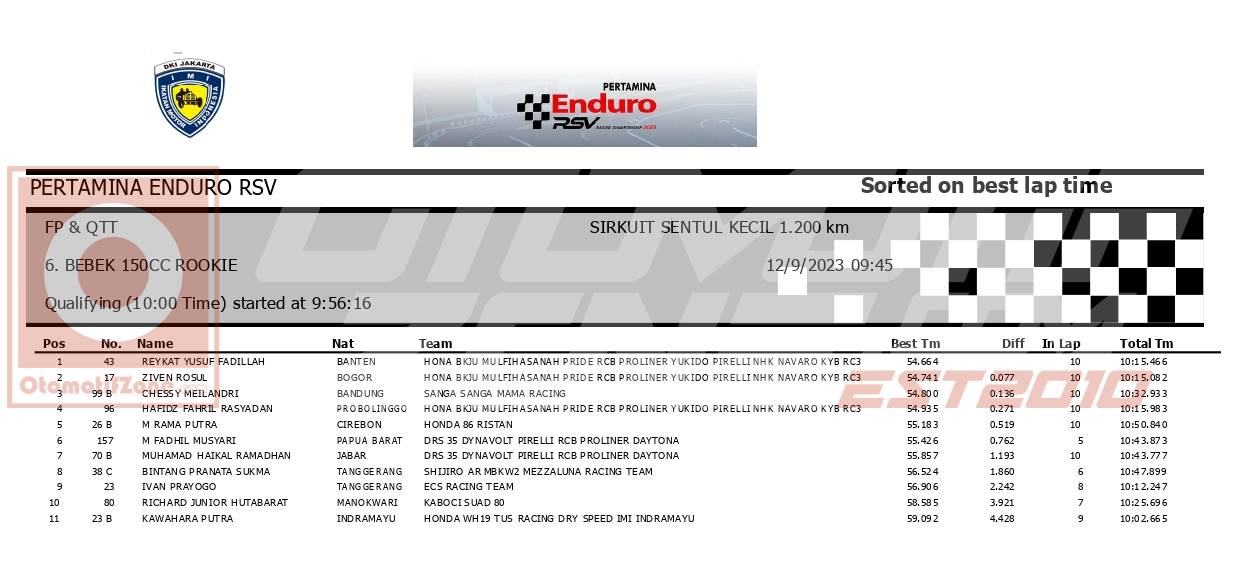 Reykat mampu menjadi yang tercepat disusul Ziven Rozul diposisi kedua dan HF Rasya diposisi ke empat. Tapi ini baru sesi kualifikasi. Semua bisa saja terjadi saat race nanti. Kita tunggu saja kabar berita selanjutnya hanya di OtomotifZone.com
