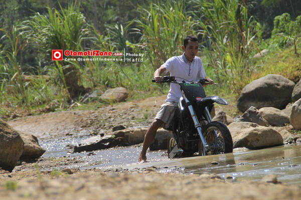 Ya setelah dari rumah Pak Sri “Gandhoel” Hartanto OZ melanjutkan perjalanan ke wilayah yang lebih ke timur. Atas petunjuk Om Gandhoel kalau rumah Pak Dhe di dekat pegunungan timur Tirtomoyo katanya harus “Nyabrang Kali” atau menyeberang sungai benar-benar nyata. Bagaimana kalau banjir sungainya Pak Dhe.. “Ya harus muter ke utara atau ke selatan, lumayan jauh,” ucap Pak Dhe. Memang jauh, 5 sampai 6 kilometer ada bro.. Benar-benar salut, di desa jauh dari kota seperti ini ada engine builder yang mengantarkan seorang H.A Yudhistira Juara Indoprix 2012 dan Hadi Wijaya Juara Asia Road Racing Championship 2010 dan Gupito Kresna di tahun 2014 tahun kemarin diajang yang sama.