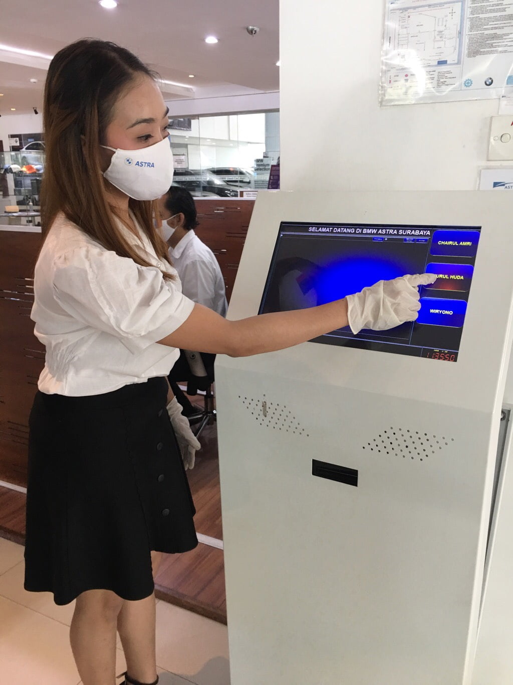Setelah itu customer dibantu staf showroom mengambil nomor antrian untuk meminimal terjadinya kontak.