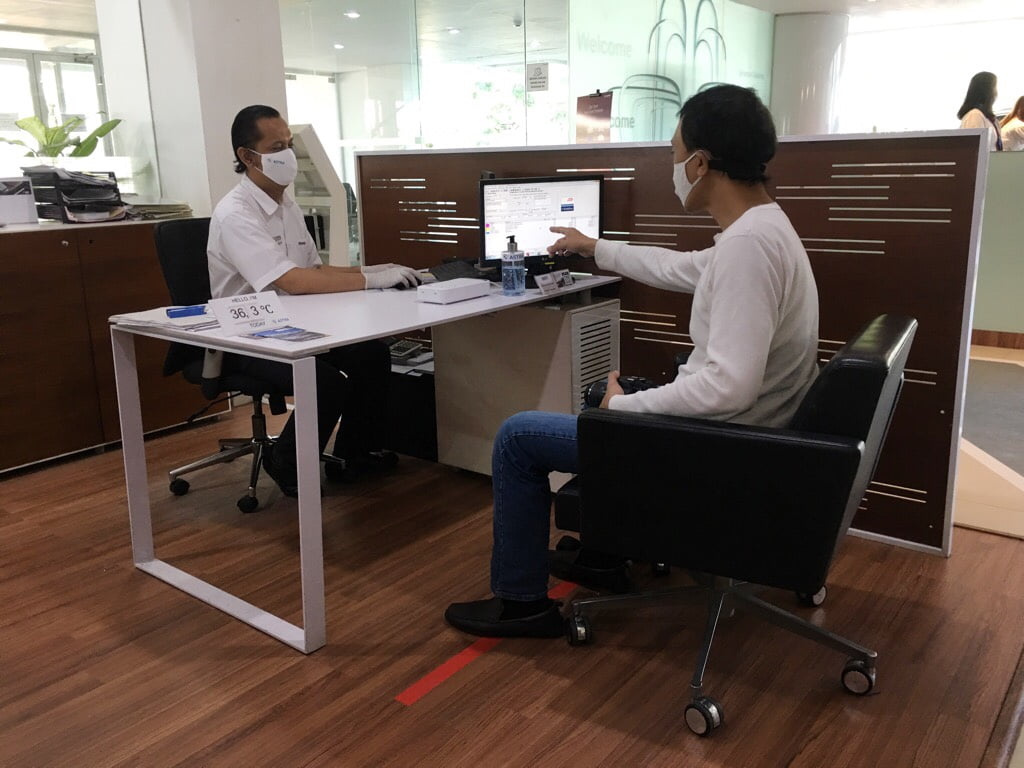 Staf penjualan selalu mensterilkan unit pajang dan menjaga physical distancing baik waktu service maupun bertatap muka dengan Service Advisor agar customer tetap merasa aman dan nyaman.