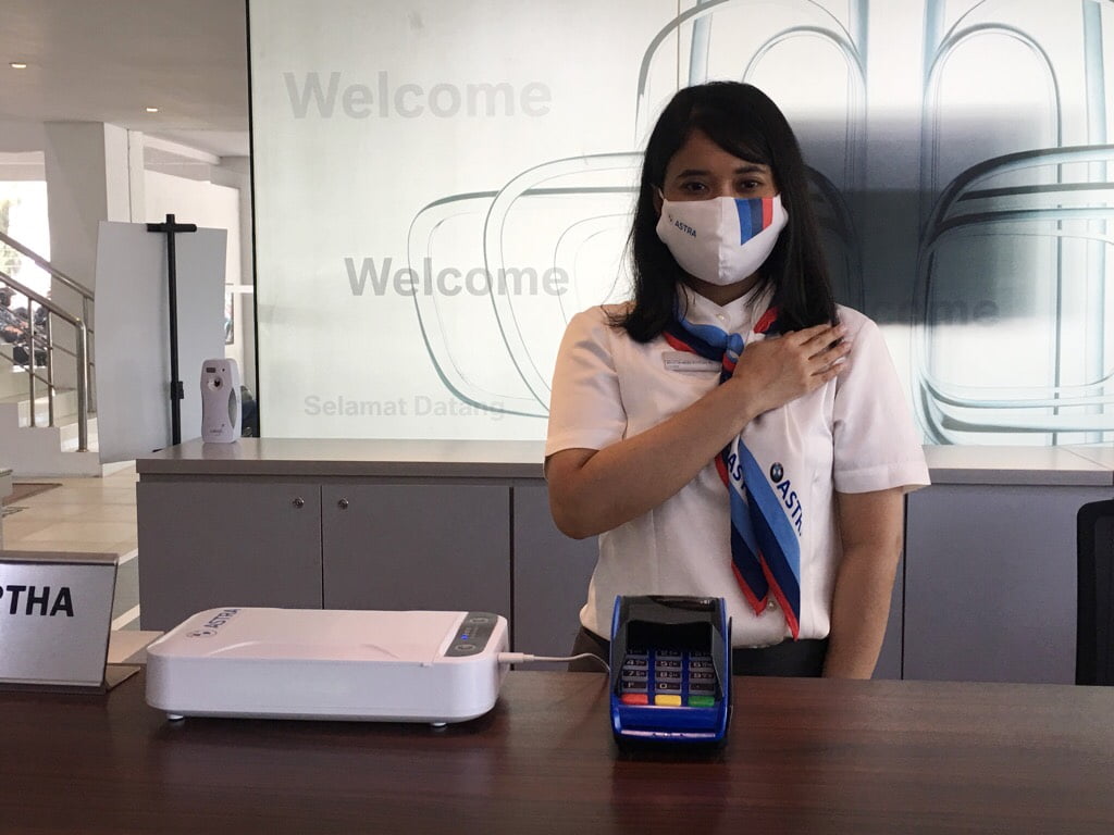 Di showroom, protokol kesehatan dimulai sebelum customer memasuki gedung dengan terlebih dulu mencuci tangan dan diukur suhu tubuhnya. Setelah itu customer melakukan QR scan, tujuannya agar terekam dalam database sebagai pengunjung showroom.
