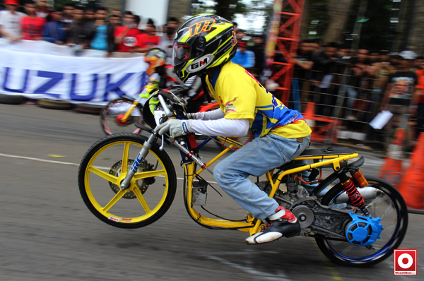 “Awalnya saya coba-coba lebih cocok balapan dimana, tahun 2008 di road race, kemudian 2009 saya pindah ke grasstrack, dan 2010 saya mulai coba balap drag bike ternyata cocok karena saya memiliki postur badan yang kecil, karena drag bike harus mempunyai tubuh yang ideal,” buka Sani Kedot pemilik nomor 180 ini.