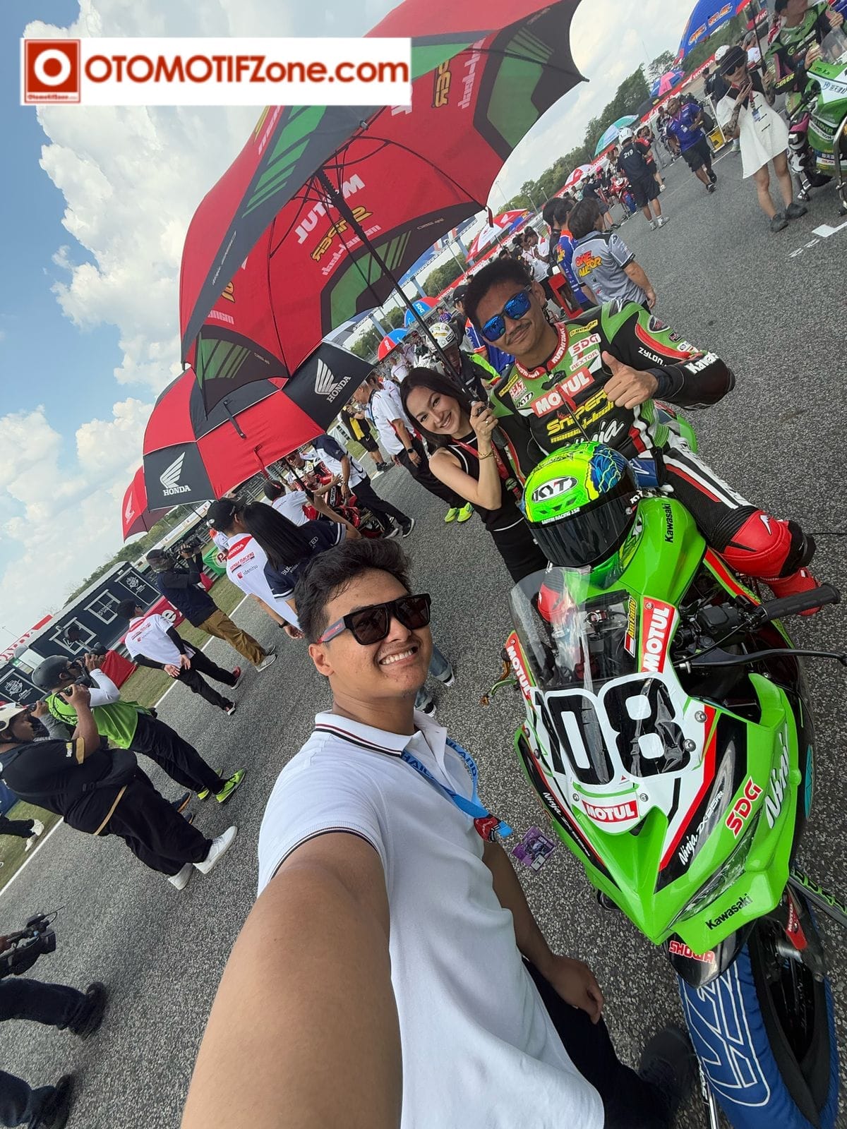 ” Saya ke Thailand hanya untuk nonton dan support pebalap di ajang ARRC. Ini juga sekalian mengobati kerinduan saya. Doain saja saya bisa buat tim dan bisa wildcard mas. Selain itu di Saudi juga sedang tidak ada kegiatan mas,” ujar Agung langsung kepada Otomotifzone.