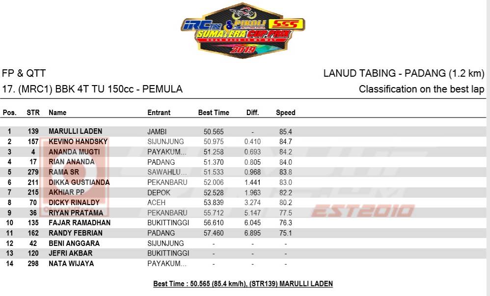 Lalu berapakah posisi pebalap idola kalian. Berikut daftar kualisikasi kelas SP1 Gelaran Sumatera Cup Prix (SCP) yang diikuti 14 pebalap: