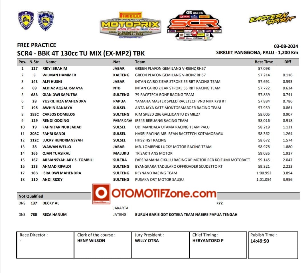 Lalu posisi berapa pebalap andalan kalian? Berikut hasil babak FP SCR4: