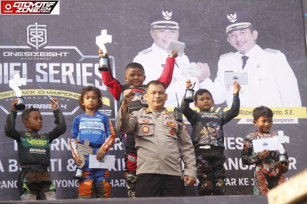OtomotifZone.com-Karanganyar. Luar biasa semangat ingin menang di kota sendiri bagi Wisnu Muncar kala bermain Special Engine 50cc Seri 4 OneSixEight Indiel Grasstrack Motocross sirkuit Kelana Sakti, Tugu, Jumantono, Karanganyar hari ini 17 September 2022.