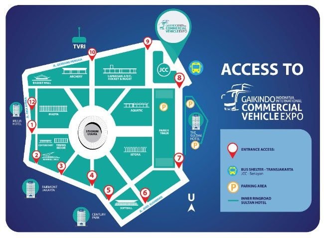 Namun pengunjung yang berencana hadir di GIICOMVEC 2018 tidak perlu khawatir, karena menjelang berlangsungnya GIICOMVEC 2018, GBK akan membuka sebelas (11) pintu akses masuk menuju area JCC. Pintu akses masuk akan dapat dituju dari keempat penjuru jalan sekeliling GBK, yakni dari Jl. Jenderal Sudirman, Jl. Gatot Subroto, Jl. Gerbang Pemuda, dan Jl. Asia Afrika.