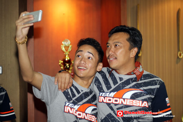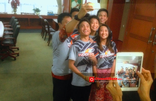 Pertemuan yang berlangsung kurang lebih 1 jam ini dihadiri 4 pegokart Indonesia yang berlaga antara lain Amir Mahpud, Senna SN, Silvano Christian dan David “jong Ambon”sitanala didampingi keluarga dan mekanik serta official dan juga dihadiri juga 2 pembalap asal TKM Racing Kezia Santoso dan Keanon Santoso. Sebelum berakhir acara dengan pa Menpora, OZ mendengar bisik-bisik tetangga ketiga pegokart yang duduk dalam 1 kursi, Senna, Kezia dan Keanon, mereka bersepakat untuk meminta foto selfie bareng pa menteri, mereka sudah okey dan saling tos bro, kalau satunya berani yang lain juga oke. Ternyata oh ternyataa….. nyali ngebut disirkuit tidak sebanding ketika harus bicara dengan sang Menpora, takut liat kumisnya yahhh sen, Kez dan Keanon..??? 🙂