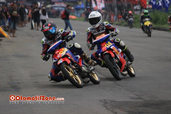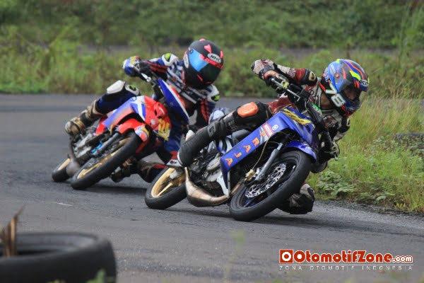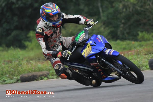 Reza Gareng yang sudah ambil alih posisi aman dengan gap hampir dua detik pembalap kedua. Membawa motor Hartech Jogja, Reza sangat tenang bawa 125z warna biru tersebut.