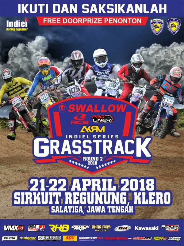 Salam Otomotif Indonesia, kembali lagi dengan Gebrakan baru dari Indiel Racing Organizer!! Ikuti dan Saksikanlah Kejuaraan Bergengsi Indiel Grasstrack Seri 2, 21-22 April 2018 Sirkuit Regunung Klero Salatiga Jawa Tengah! Dapatkan kesempatan doorprize menarik dari sponsor untuk penonton!! Yang akan diikuti Pembalap Nasional Indonesia!