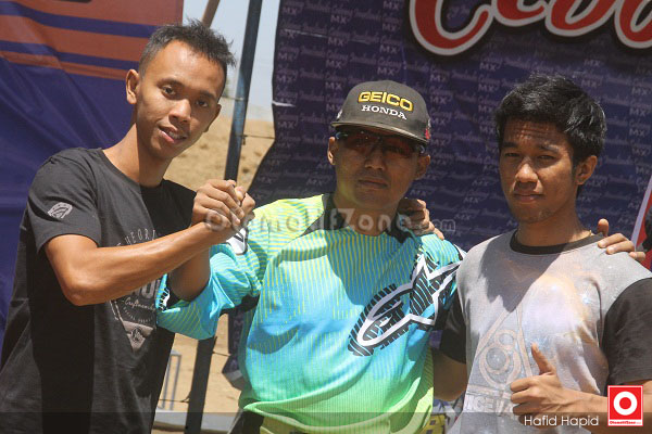 Begitu pula dengan pembalap lainnya seperti Ivan Harry yang berkali-kali tersungkur pontang-panting di buang liarnya motor. Pembalap Kawasaki Vmx Indonesia bernomer start 33 asal Solo ini mengaku lemas. “Bener mas, terutama tangan saya sampai gak kuat. Lemes banget!,” tutur pembalap jangkung ini. 20 menit dihajar bagaimana tidak lemes bro..