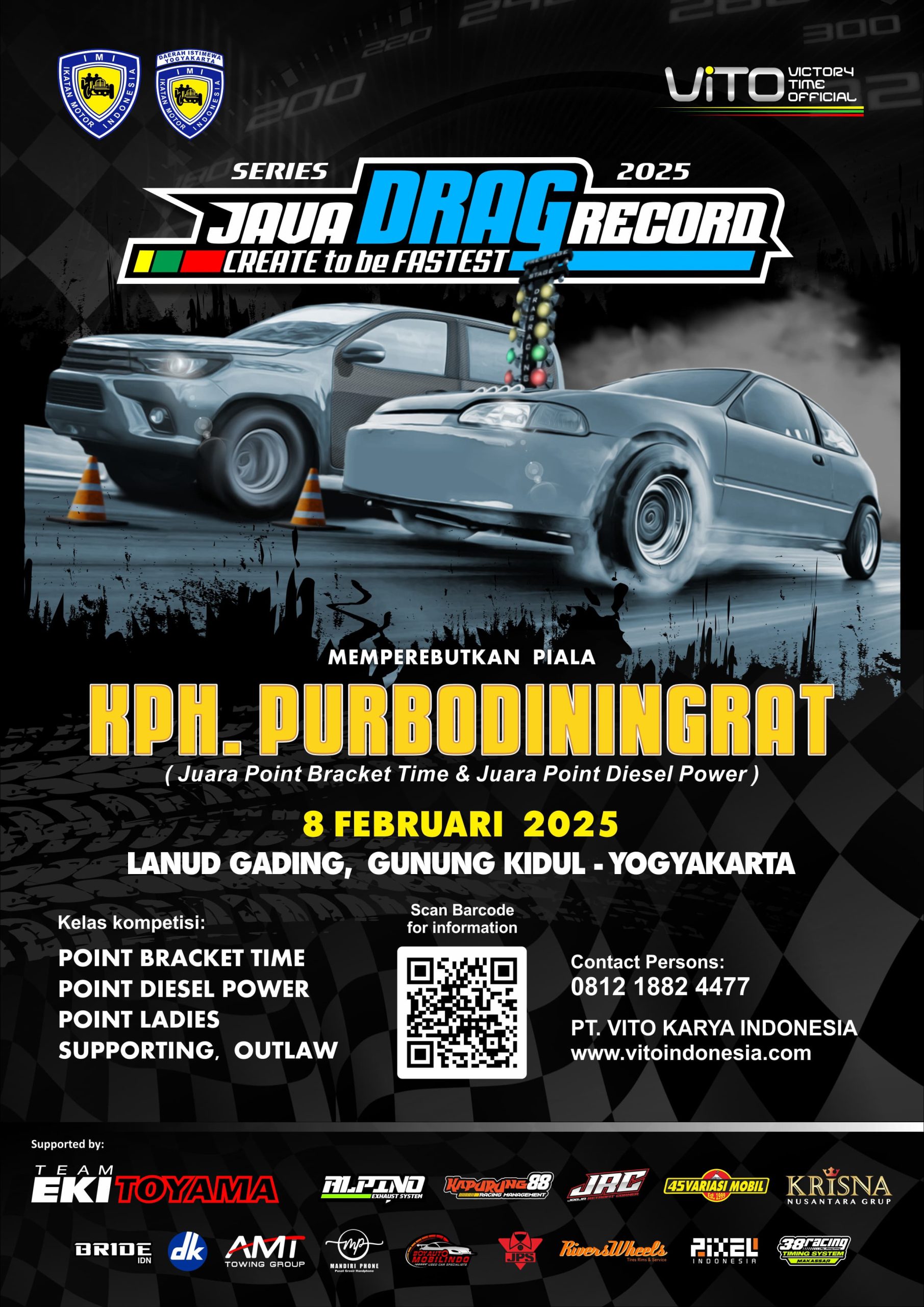 Sebagai konsep awal seri Java Drag Record Series 2025 piala KPH. Purbodiningrat menjadi sebuah legacy yang akan diperebutkan dalam kejuaraan dragrace 3 putaran di sirkuit non permanen Lanud Gading, Playen, Gunungkidul, Yogyakarta ini nantinya. KPH. Purbodiningrat sendiri adalah salah satu tokoh otomotif di Yogyakarta yang sekaligus juga ketua IMI DIY yang pastinya mendukung penuh hadirnya Java Drag Record Series 2025 ini yang notabene adalah event balap yang diprakarsai oleh promotor asli dari Yogyakarta.