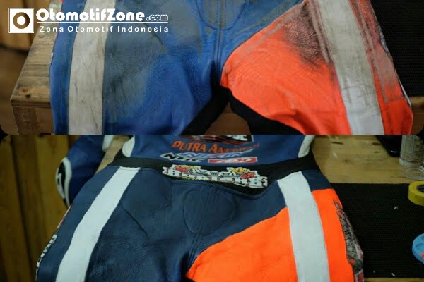 Eiy…. Shoes Clinic 92 juga melayani cuci dan repair wearpack balap lho. Warna kusam bisa di betulkan disini. Jadi seperti baru lagi. “Bisa tahan lama catnya, bahan cat juga impor. Tidak kalah dengan repair wearpack luar negeri,”.