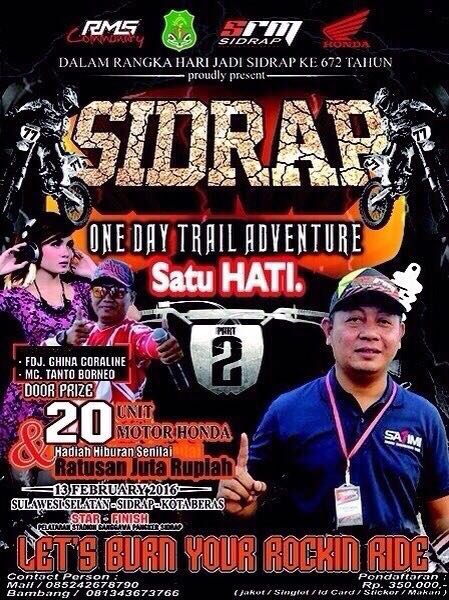 Otomotifzone.com, Rappang Sulsel. Bukan Kabupaten Sidrap jika tak mampu membuat event yang esklusif. Kali ini para pecinta motor garuk tanah dimanjakan dengan event adventure yang menempuh rute sejauh 100 km.