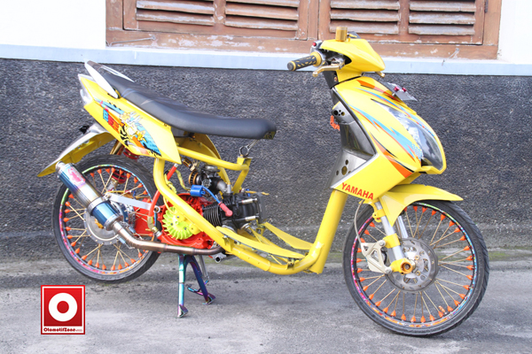 Konsep modif sudah dapat tinggal dieksekusi, untuk proses modifnya dipercayakan ke Koplok Custum yang bermarkas di daerah Loano Purworejo. Bagi Bowo sang modifikator spesialis modif apapun langsung membangun motor sesuai request konsumen. Fokus ubahan difokuskan ke bagian bodi, untuk bodi yang dilepas ada di bagian tengah tinggal menyisakan bodi depan dan belakang. Supaya lebih cling warna kuning jadi pilihan, kualitas cat merk sikken dan clear merk spiez hekker tak dapat ditandingi, dengan sedikit sentuhan cutting sticker sungguh pas ditempel di bodi. Rangka bawahan pabrik tetap dipertahankan Cuma ditambah aksesoris . Sektor kaki-kaki bagian shock Yushimura supaya rem pakem diganti brembo, sedikit aksen di oil coler punya yoso lebih cantik. “Sekarang ini modif yang baru trend adalah konsep minimalis, konsep minimalis lebih mudah dalam proses pengerjaan karena tidak perlu buat bahan baru,”terang Bowo sang modifikator.