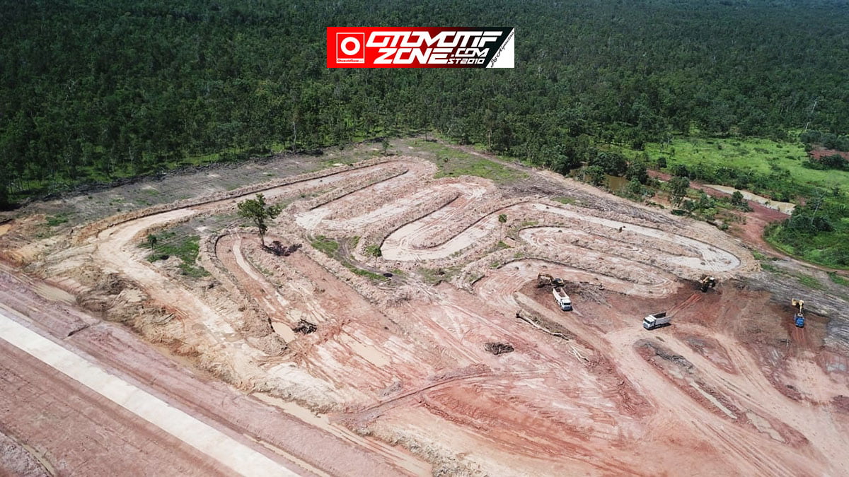 prosesnya ini. Hingga saat ini pembangunan sirkuit dengan luas 26,5 hektare untuk 2 sirkuit yang berlokasi di Kebun Coklat, Tanah Miring, Merauke. Untuk sirkuit balap motor yang sampai saat ini terus di kerjakan sudah dalam tahap pengecoran lintasan tahap pertama, dan pengerjaaan ini akan rampung pada akhir Mei sampai ke tahap pengaspalan,” ungkap Pangky.