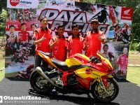 General Manager Sales Marketing & Logistik DAM, Lerri Gunawan diatas panggung memperkenalkan tiga tim binaanya, yaitu Daya Trijaya Racing Team (Rudi Hadinata), Honda Daya Jayadi Racing Team (Jayadi), dan Honda Daya Golden Racing Team(Zaenal Mutaqin).
