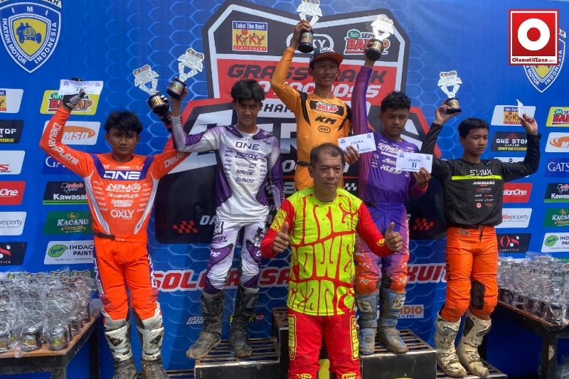 OtomotifZone.com – Sukoharjo. Fabio Erlang sukses mengawinkan gelar juara 1 Lokal Jateng dan berhasil menang di kelas Pemula 18 tahun di Kiky Teh Sepeda Balap Kejurprov IMI Jateng Grasstrack dan Motocross Series pada hari pertama 25 Mei 2024. Masing – masing berhasil diraihnya melalui kelas Bebek Standar Pemula Jateng, dan kelas Bebek standar 18 tahun di Sirkuit Assalaam Solo.